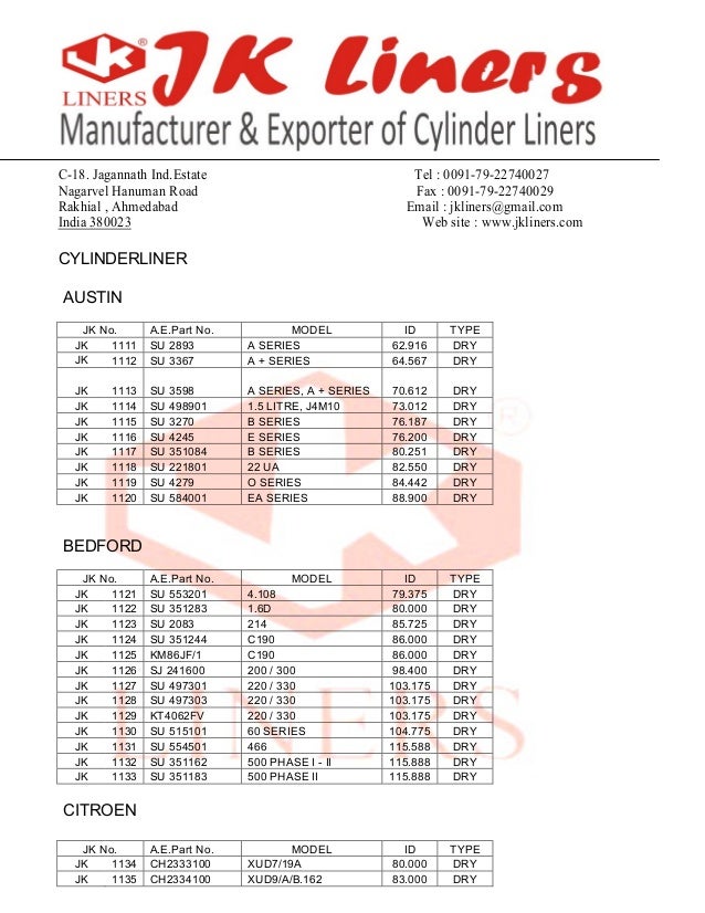 Cylinder Liner Catalog Jkliners Com