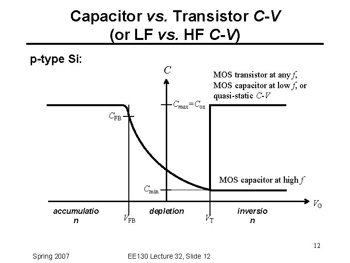 Lecture 32 Outline The Mos Capacitor Capacitancevoltage Cv
